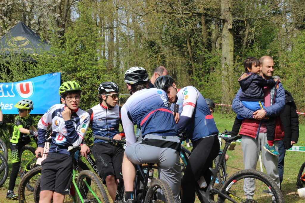 « 73 », c’est le nombre d’engagés pour cette 3ème manche du « VTT Tour Jeunes FSGT ». Merci à tous ! Merci aux clubs de la région IDF qui ont fait le déplacement (parfois de très loin). Merci aux enfants non licenciés d’avoir enfourché leur vélo. Merci aux parents d’avoir donné de la voix dans ce beau bois de Bellevue. Merci à la Mairie de Maintenon de leur accompagnement et à Thomas LAFORGE, Maire de Maintenon, d’être venu remettre les prix en fin de journée. Merci à Günther DECKER, élu de la ville de Pierres, d’être venu également remettre les prix. Merci à Hervé, notre encadrant de l’école de vélo et membre du Bureau, d’avoir soumis cette superbe idée. Merci à Arnaud, Loan, Thomas et Yann pour leur énorme travail avant et pendant la course. Merci à l’ensemble des bénévoles présents très tôt le matin pour sécuriser, préparer, baliser les circuits.